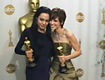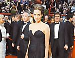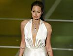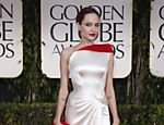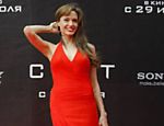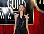 Angelina Jolie exibe seu vestido Versace no tapete vermelho do Oscar 2012, em Los Angeles